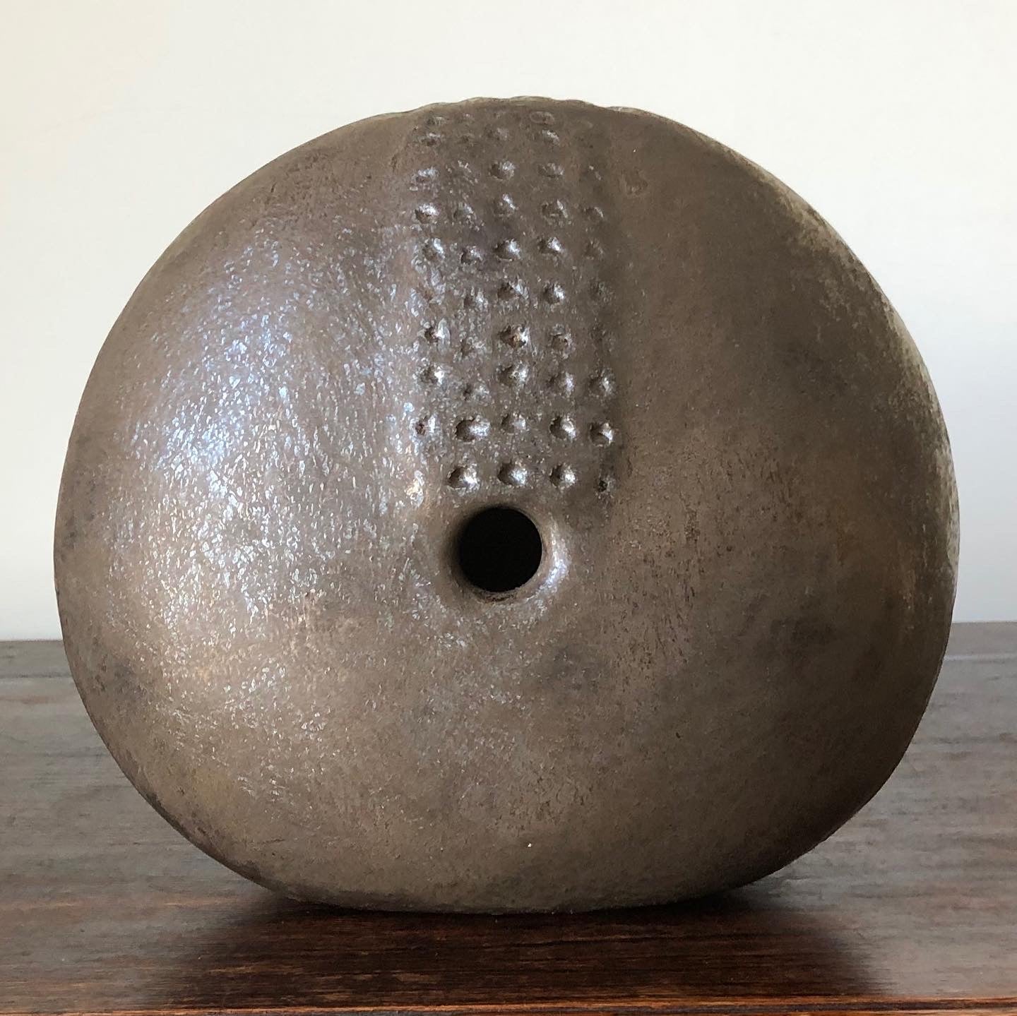 Large handbuilt vessel in a matt bronze. I’m fascinated by how it looks different at different times of the day and with different light sources.